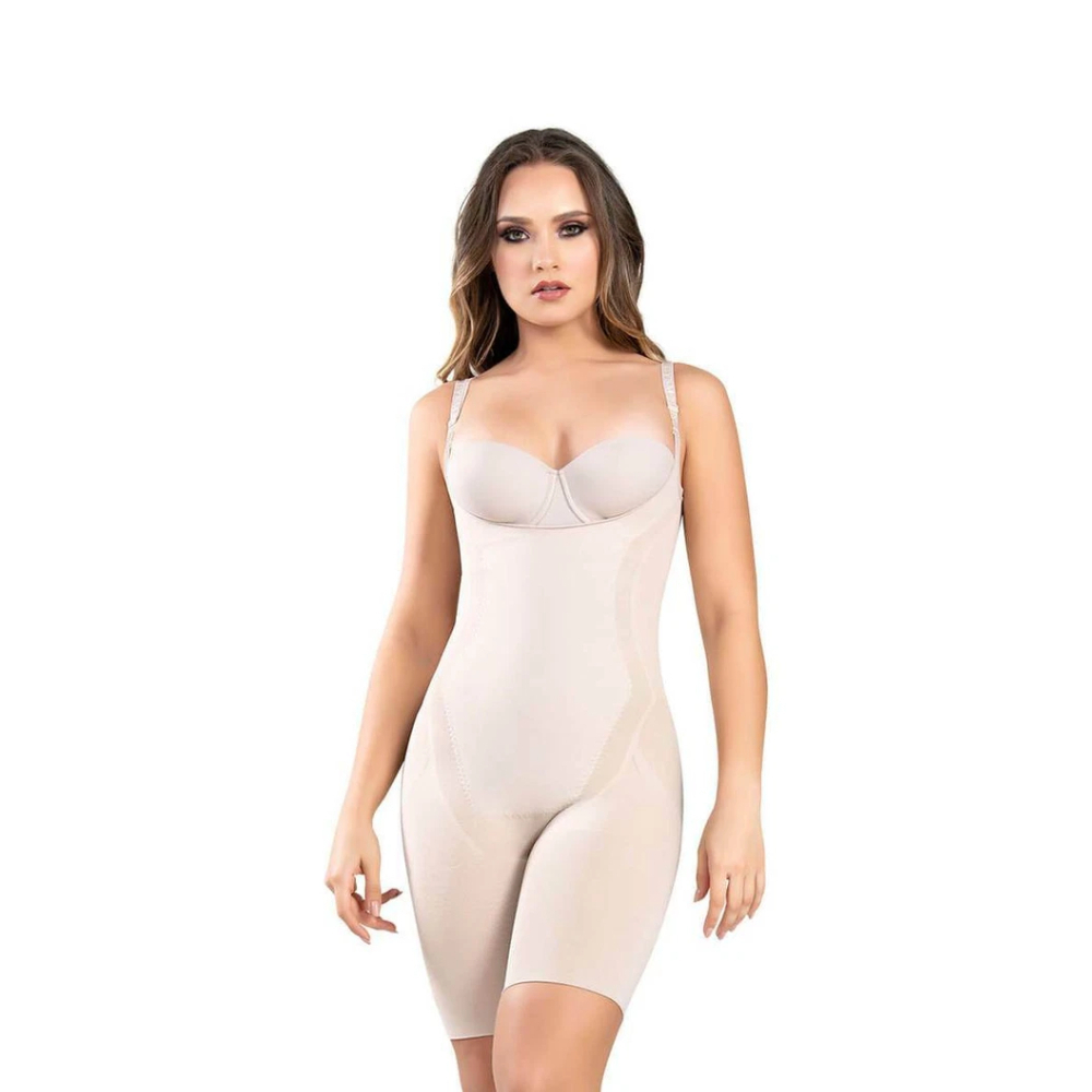 Moldea y controla: Su diseño ejerce una compresión en el abdomen y la cintura, y sus tiras anchas controlan los "rollitos" que se forman en la zona de las axilas y el brasier.